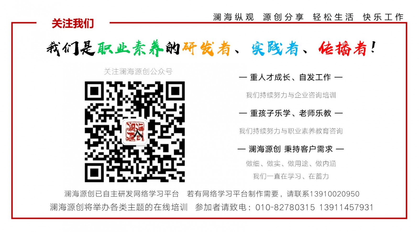 本文案由北京澜海源创管理咨询有限公司出品,澜海源创是职业素养研发者、实践者、传播者。